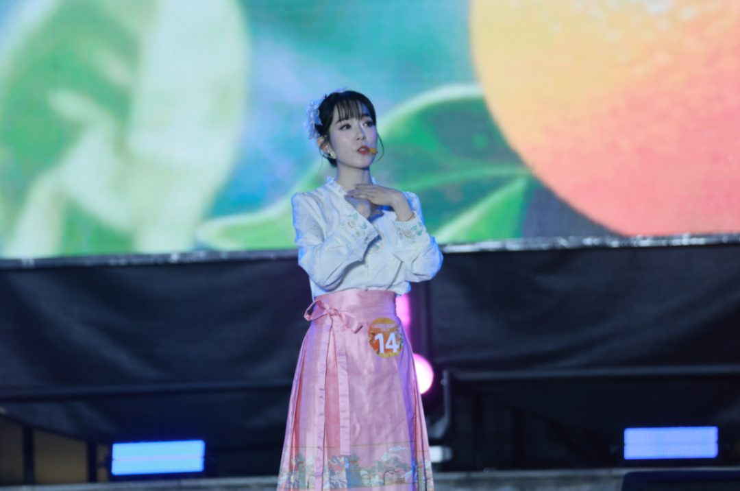 在才艺展示环节中,16名选手不约而同将德庆贡柑种植、采摘、加工等元素融入表演中,有选手身着融入了贡柑元素的旗袍展示了一场优雅的旗袍秀,有选手现场演唱德庆贡柑主题曲《小甜柑》以歌声赞美“柑甜”,还有选手以一口流利英语向大家推介德庆贡柑……大家以才艺为载体,倾情演绎德庆贡柑的甜蜜故事,赢得了现场观众如潮的掌声。